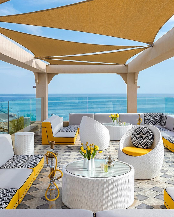 其次,酒店的海景房除了室內(nèi)的設(shè)計,室外肯定也是要花費心思的,我們可以室外做些延伸的露臺,讓客人可以在戶外直接感覺海風(fēng)的清涼。室外露臺的話可以做一些景觀的設(shè)計,設(shè)計成一個小的私家花園的感覺,再在中間設(shè)計一個符合意境的餐桌,這樣客人可以一邊品嘗美味佳肴,一邊欣賞絕世海景。