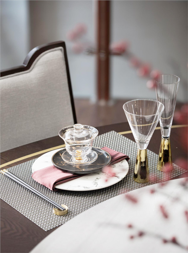 中華民族有著自己的民族特色和文化背景以及飲食習(xí)慣。在中式餐廳中經(jīng)常會(huì)運(yùn)用藻井、斗拱、中國(guó)書畫、傳統(tǒng)紋樣、宮燈、紅色等這些具有中國(guó)傳統(tǒng)特色的符號(hào),加上傳統(tǒng)園林的空間劃分與組織方式來塑造和裝飾,以營(yíng)造中國(guó)傳統(tǒng)餐飲文化的氛圍。