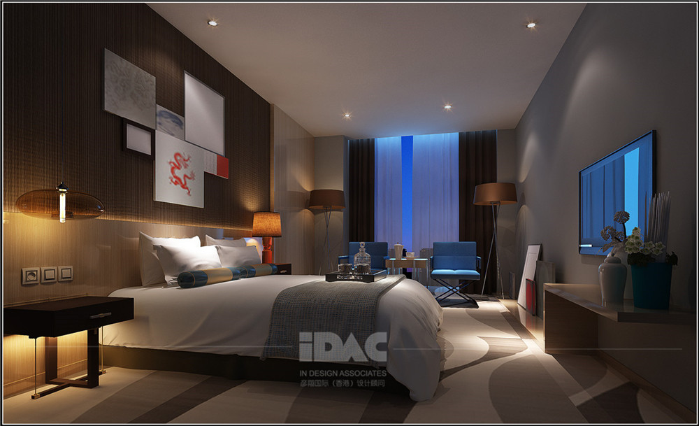 5、就寢區(qū),這是整個客房中面積最大的功能區(qū)域。床頭板和床頭柜成為設計中的核心問題。根據(jù)客戶需求,為了便于酒店銷售,建議不要在床間設置床頭箱,或者設置簡單的桌子裝置,必要時可以折疊。不要再提到集中控制面板了。這是客房中最應該淘汰的設備。床頭柜可以設置在床的兩側,因為它的功能非常簡單,使用方便是最重要的,不能太復雜。床頭的后屏和墻壁是房間中相對完整的區(qū)域,可以著重描述。但是,注意床的水平面以上70 cm左右的區(qū)域,考慮到容易污染、防污性的材料,調整光線的支架燈和電燈(壁燈好)對于形成就寢區(qū)的光環(huán)境很重要,使用頻率和破損率高,不容忽視。