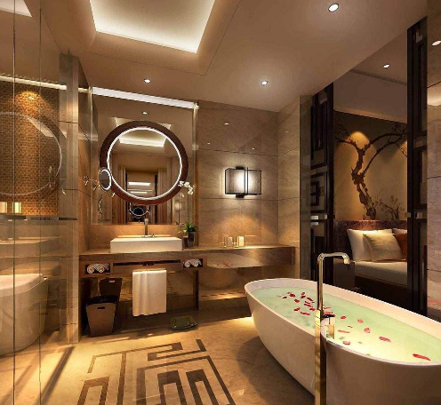 酒店設(shè)計中如何布置客房衛(wèi)生間,酒店客房中少不了的不是陽臺、客廳和書房,而是衛(wèi)生間。衛(wèi)生間間空間獨立,風(fēng)、水、電系統(tǒng)交錯復(fù)雜,設(shè)備多且面積小,酒店衛(wèi)生間應(yīng)遵循人體工學(xué)原理,做人性化設(shè)計。衛(wèi)生間必須做到干濕區(qū)分離,避免功能交叉,互擾。對于主題酒店衛(wèi)生間的設(shè)計更高端所涉及的方面更廣泛,下面我們來一起看看酒店中客房衛(wèi)生間應(yīng)該如何設(shè)計。